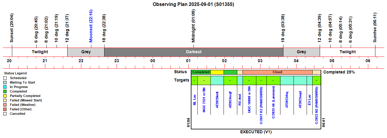 Target cancelled (9/14, C/2017 K2 (PANSTARRS)) due