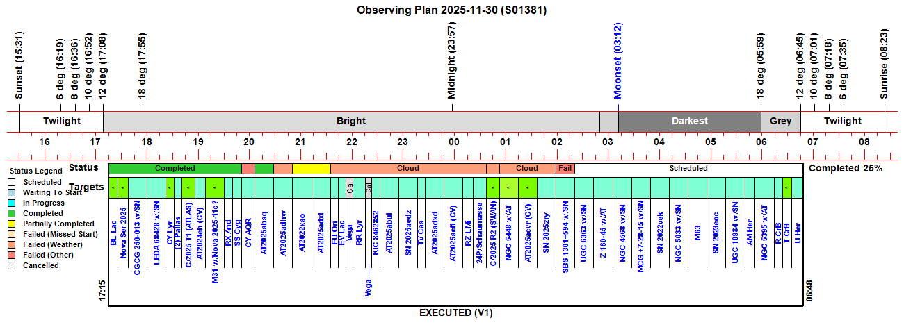 Target cancelled (24/48, SN 2025aedz) due to cloud |