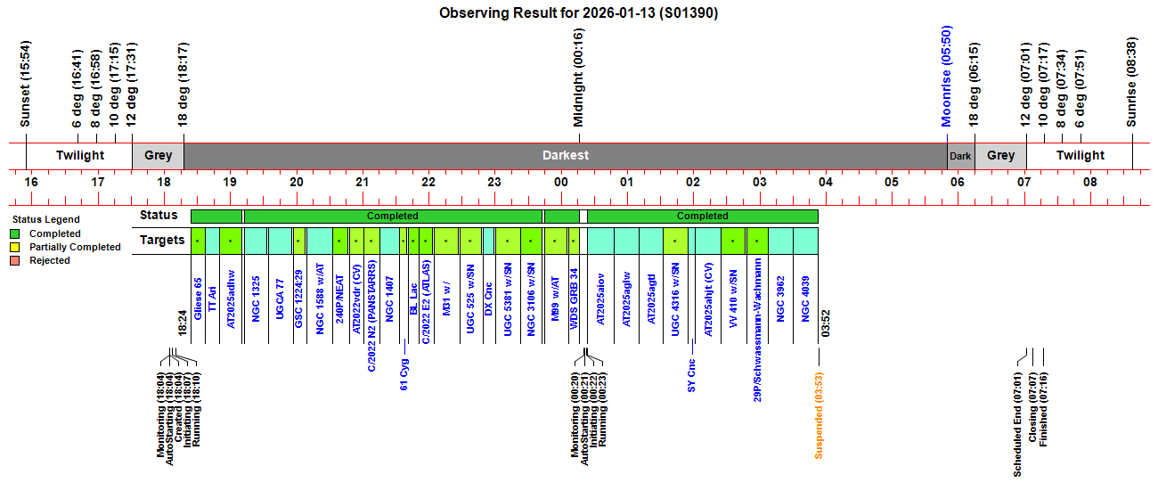 | - Observing Result - Night Summary Plot - Session Event Log |