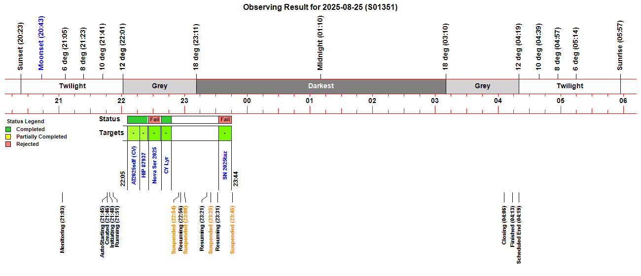 CY Lyr - Dwarf Nova - Variable AT 2025sdf - CV Type Transient - Nova Ser 2025 & SN 2025taz attempts failed (due to cloud) Variable Stars (photometric monitoring) - CY Lyr Nearby Stars (astrometric monitoring) - Barnards Star