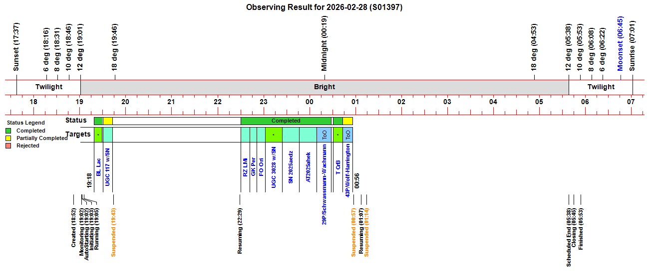 - Attempted All-Night Session (6.1 hr) ended early due to cloud - 12" LX200 + ST-10XME for imaging - TS 80mm APO + ZWO ASI178MC for guiding & imaging - Ambient Temperature: 2.5°C (min) - CCD Temperature: -20°C - Notes from 2026-02-28 >> - -
